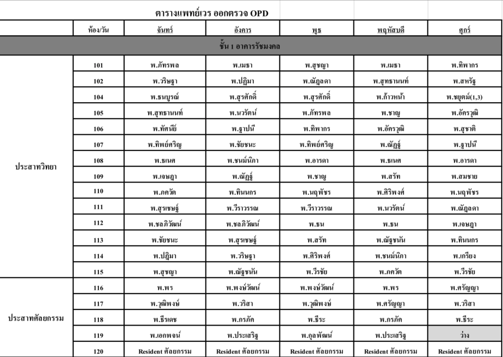 ตารางออกตรวจผู้ป่วย คลินิกในเวลาราชการ Share this: Click to share on X (Opens in new window) X Click to share on Facebook (Opens in new window) Facebook Like Loading...