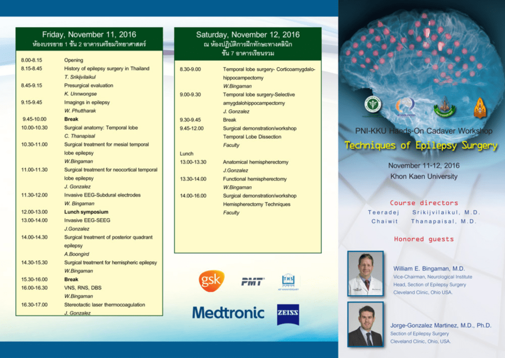 PNI-KKU cadaver workshop “Techniques of Epilepsy Surgery” , November 11-12, 2016 Posted byEkkapot JitpunNovember 12, 2016March 28, 2020Posted inUncategorized Share this: Click to share on X (Opens in new window) X Click to share on Facebook (Opens in new window) Facebook Like Loading... Related