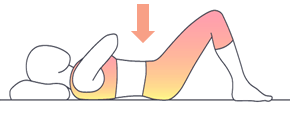 - เกร็งหน้าท้องและกดหลังลงให้แนบกับพื้นเตียง