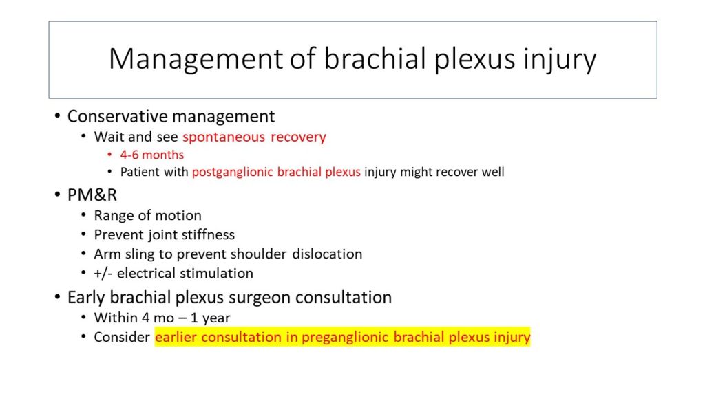 ระยะเวลาเป็นสิ่งสำคัญมาก ในการรักษาผู้ป่วย brachial plexus injury