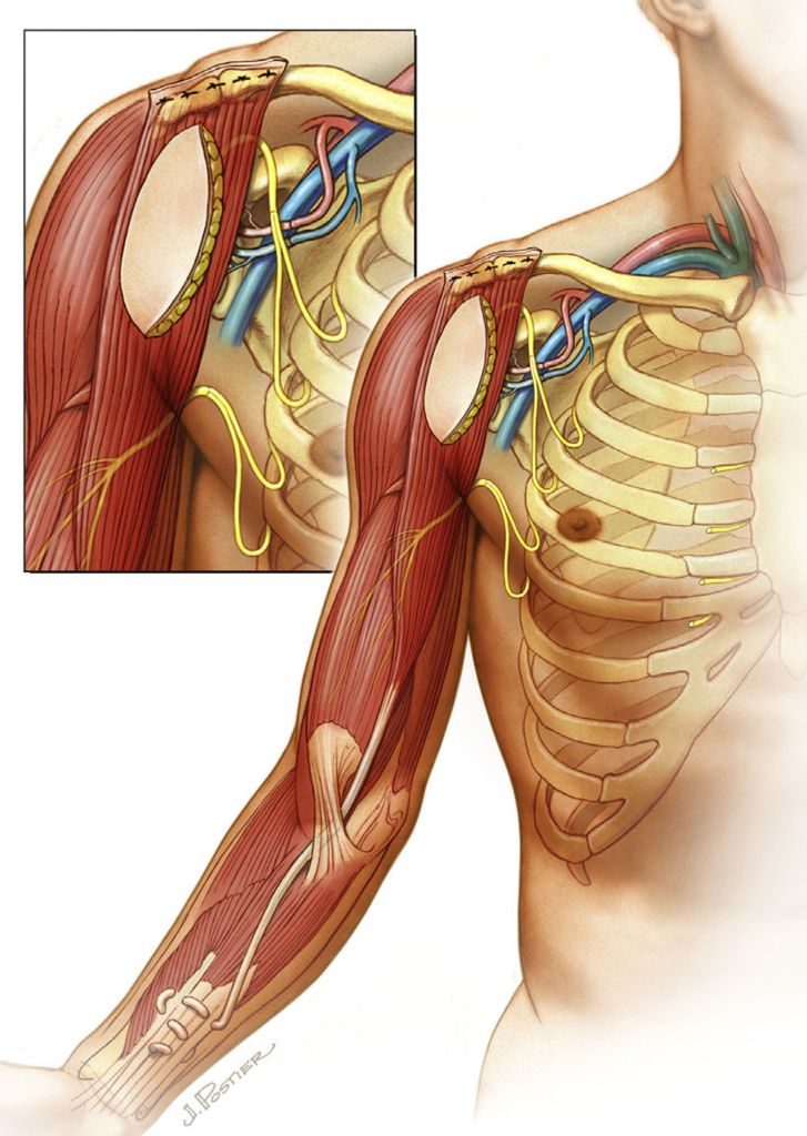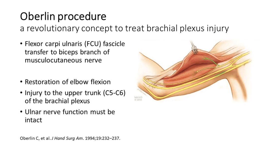 - ยกตัวอย่างเช่น ผู้ป่วยเสียการทำงานในการงอศอก แต่ยังมีการทำงานของแขนส่วนปลาย หรือมือที่ปกติ เราสามารถนำเส้นประสาทที่เลี้ยงกล้ามเนื้อที่ใช้งอข้อมือบางส่วน มาเลี้ยงการทำงานของเส้นประสาทที่ใช้ในการงอศอกได้ (plexoplexal nerve trensfer)