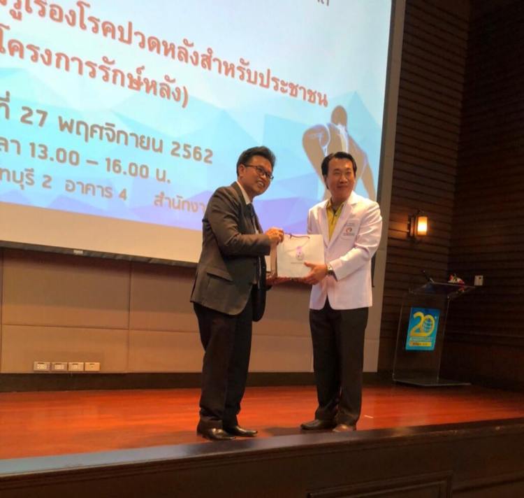 สถาบันประสาทวิทยา ร่วมกับสำนักงานคณะกรรมการป้องกันและปราบปรามการทุจริตแห่งชาติ (สำนักงาน ป.ป.ช.) จัดอบรมหลักสูตร โครงการเสริมความรู้เรื่องโรคปวดหลังสำหรับประชาชน(โครงการรักษ์หลัง) นำโดยแพทย์ธีระ ตั้งวิริยะไพบูลย์ ประธานศูนย์ความเป็นเลิศ โรคระบบประสาทไขสันหลัง พร้อมทีมสหวิชาชีพสถาบันประสาทวิทยา โดยมีนายวรวิทย์ สุขบุญ ประธานเลขาธิการป.ป.ช. กล่าวต้อนรับ ณ ห้องประชุม อาคาร 4 สำนักงาน ป.ป.ช. วันที่ 27 พฤศจิกายน 2562
